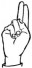 На ћирилици написано КРИСТИНА ВУЈАЧИЋ састоји се из 15 слова [?]. Исписано ћириличном једноручном азбуком за глувонеме:
